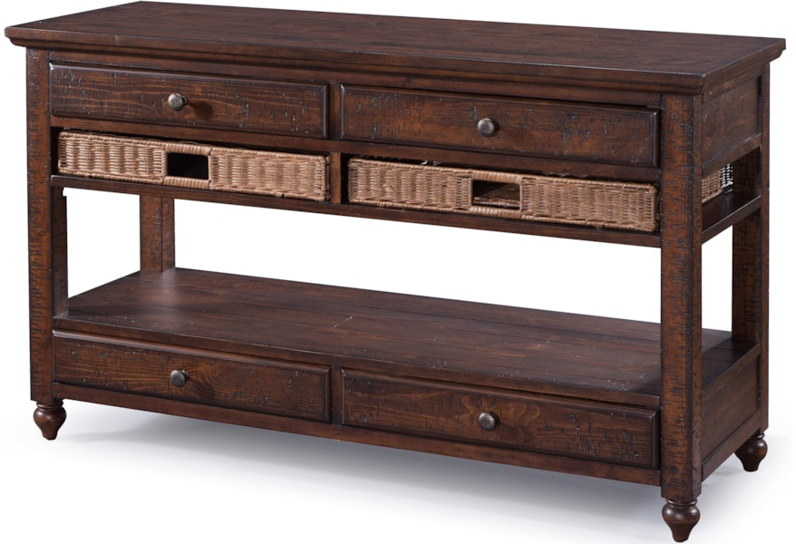 Providence Sofa Table With Storage Drawers And Rustic Baskets