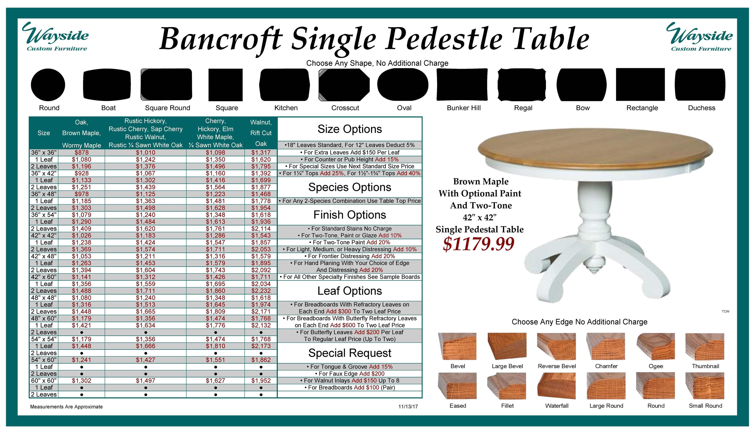 Wayside Custom Furniture Kountry Knob Bancroft Single Pedestal