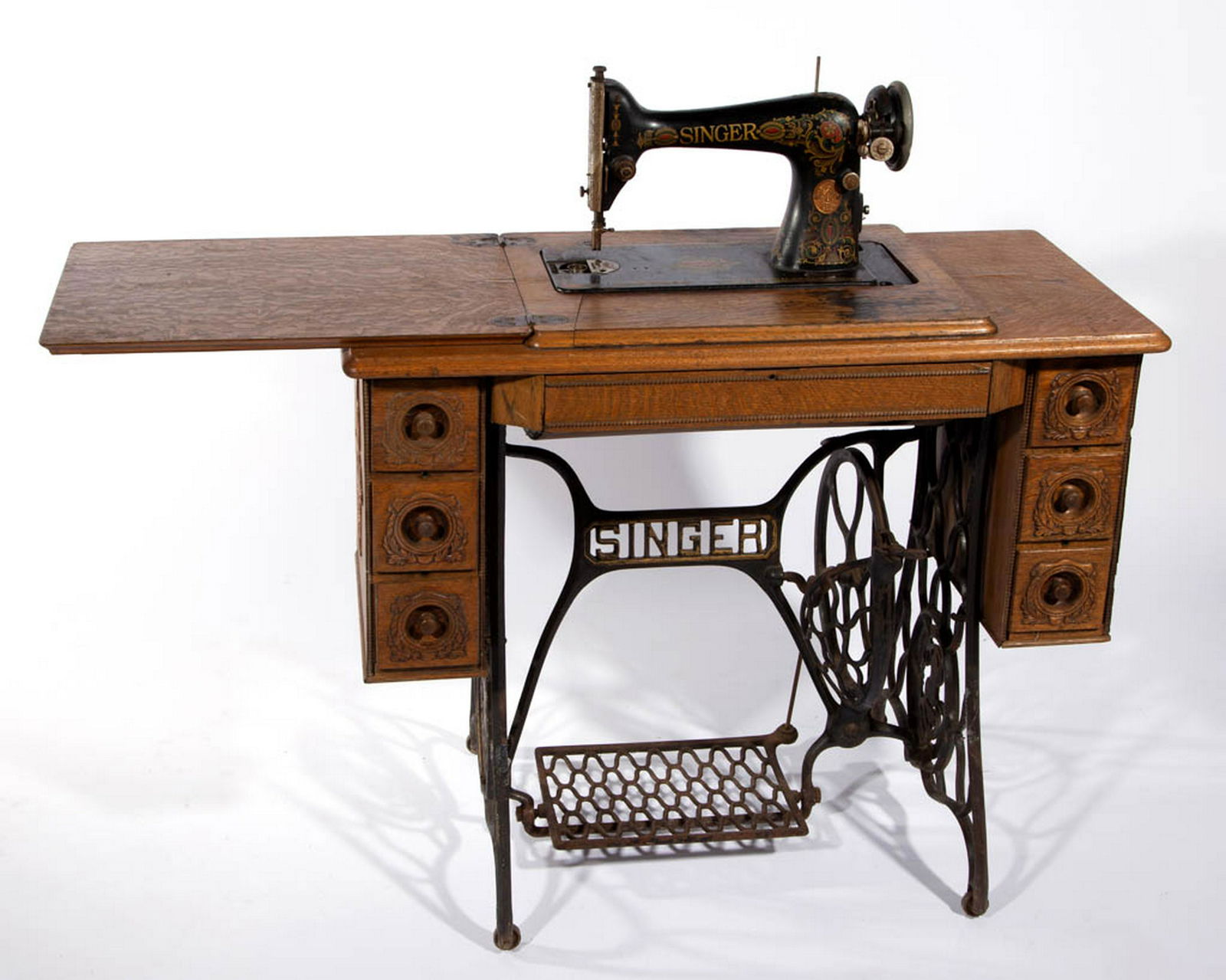 1908 Singer Treadle Sewing Machine With Carved Decorative Details