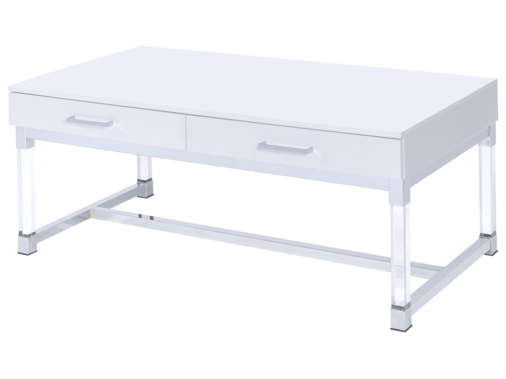 White Occasional Coffee Table With Silver Legs Kassa Mall Home