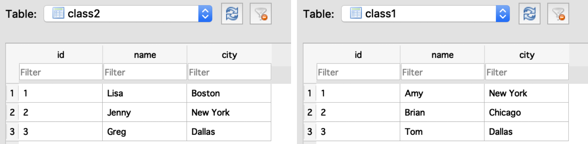Below are some of the methods you can use to compare two tables in sql.