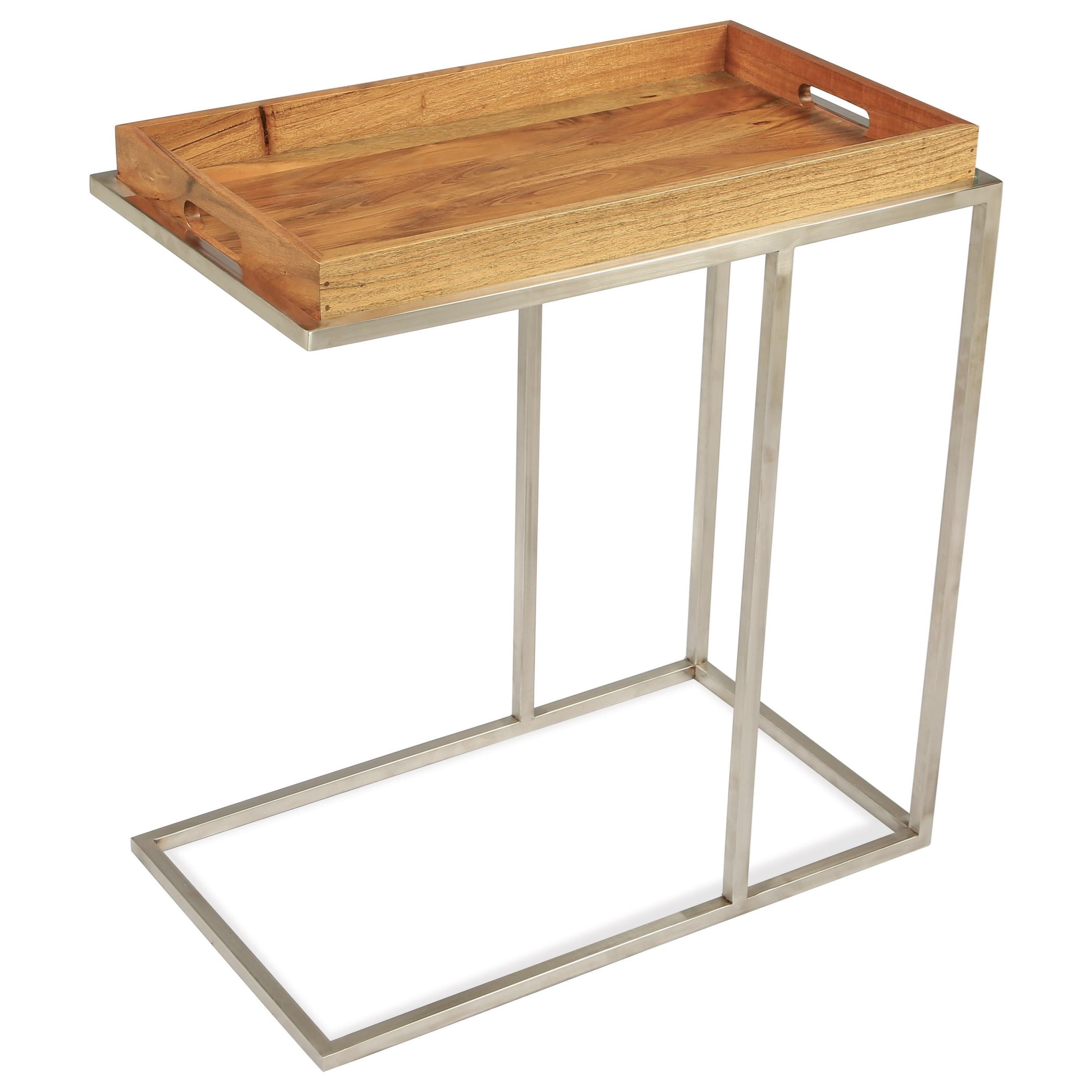 Contemporary Side Table Solid Wood Metal Round Side By