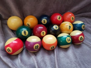 Vintage Billiard Pool Table Ball Set 1 15 Plus Cue Used