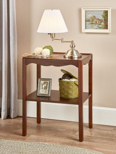 Scalloped End Table With Two Tiers Solid Wood Side Table