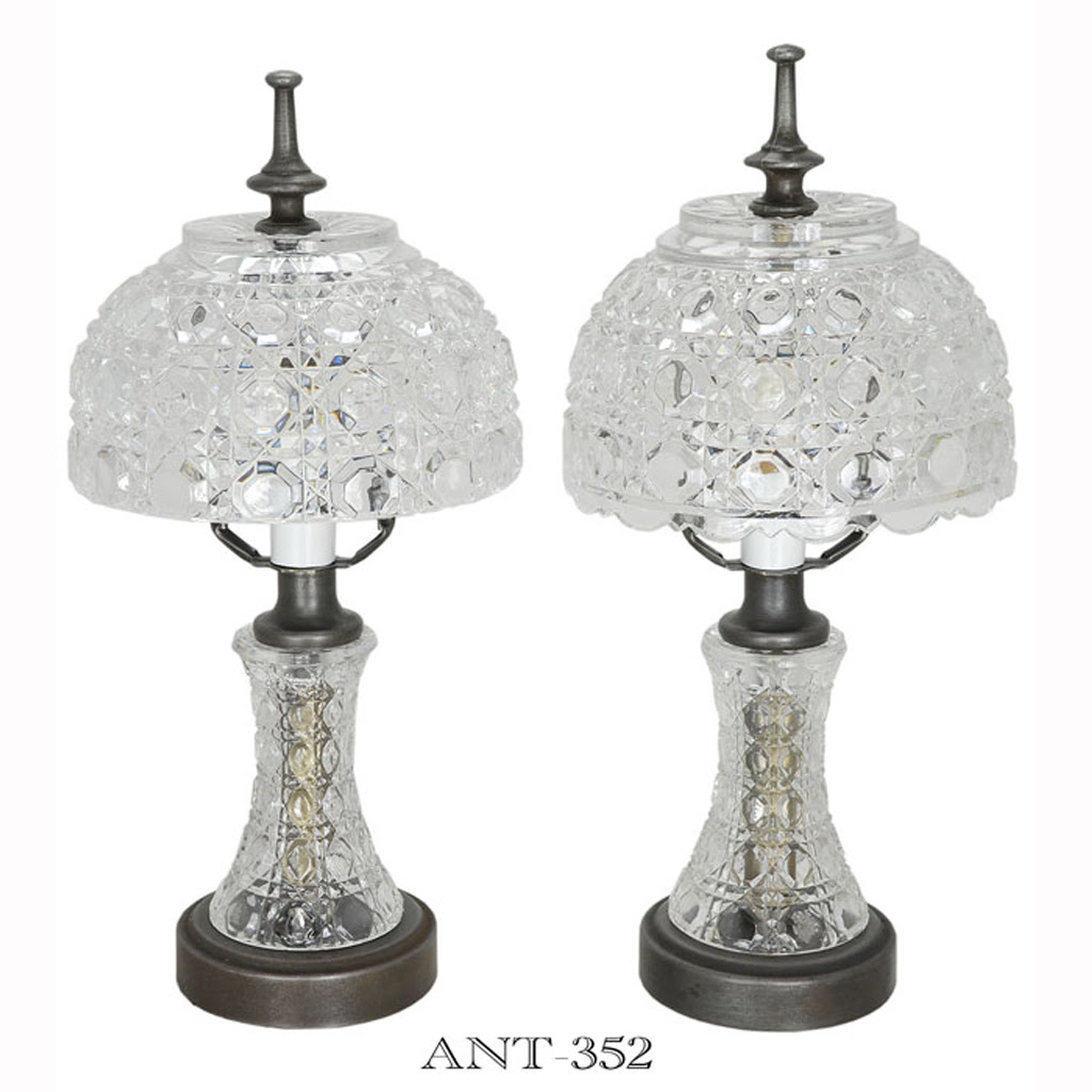 Pair Of Small Petite Vintage Glass Table Lamps Bedroom Nightlights