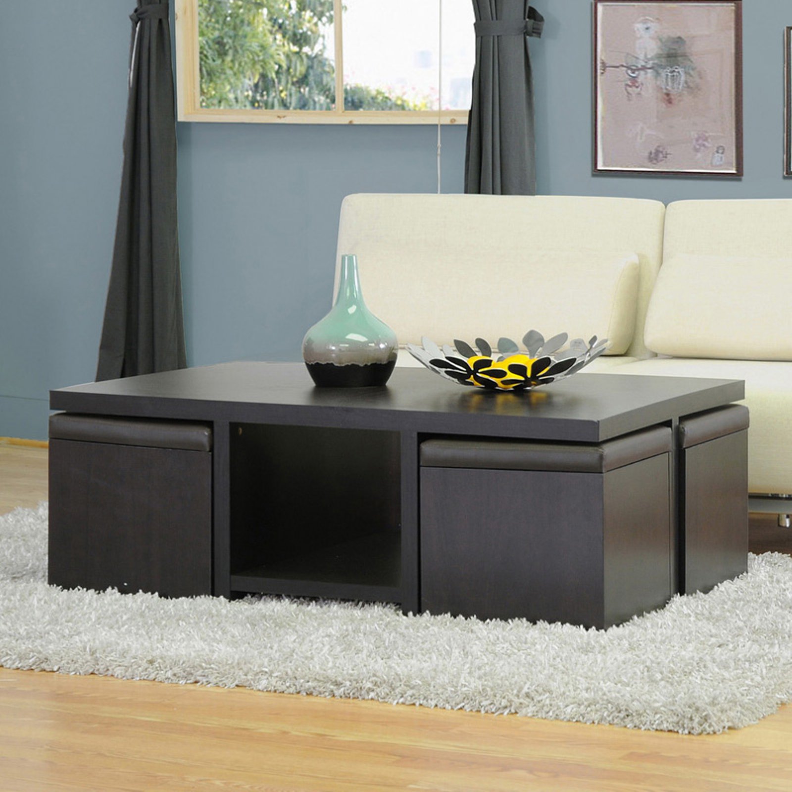 Buy Trendy Coffee Table With Storage Stool In Walnut Colour By