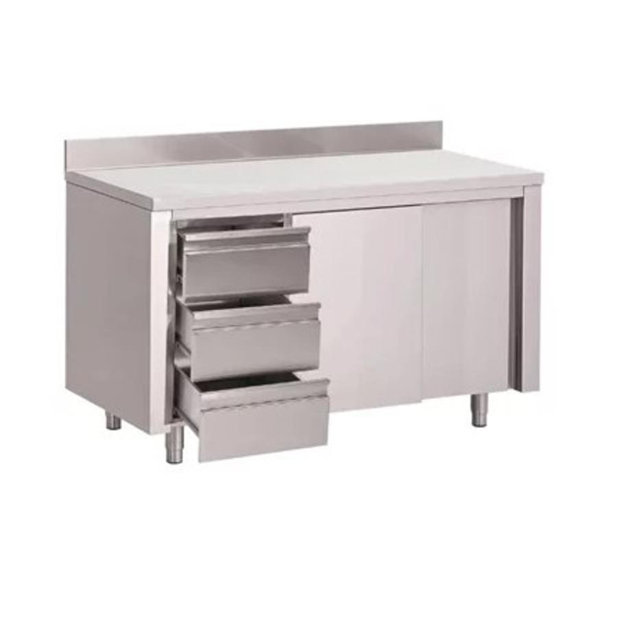 Stainless Steel Cabinet Work Table With Sliding Doors And Right
